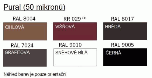 - V sedmi základních barvách : hnědý, višňový, černý, bílý, cihlový a grafitový.